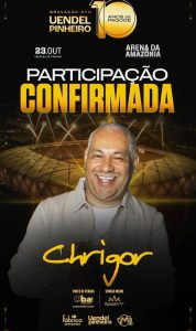 A 2º participação para o DVD 10 anos de pagode do Uendel Pinheiro, o Chrigor esta confirmado dia 23 de outubro, não deixa para a última hora, vamos fazer história Manaus, compre agora mesmo seu ingresso, é claro, teremos também o show completo do Belo 😍🤩