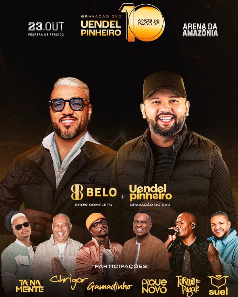 Falta pouco para o grande dia, a Gravação do DVD 10 anos de pagode do @uendelpinheiro e o show completo do @belo 🤩❤️